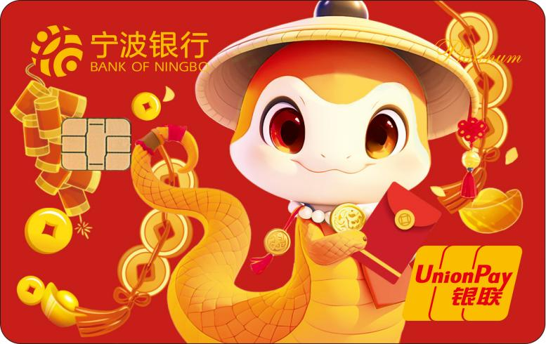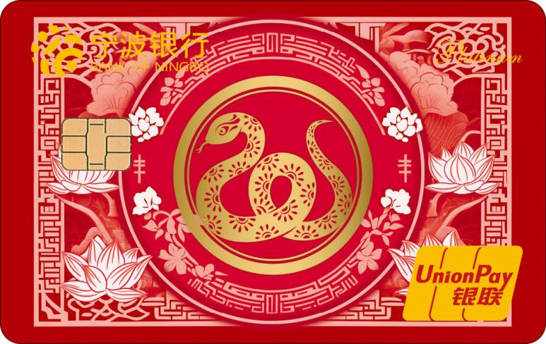 蛇年生肖白金卡是寧波銀行以“金蛇獻(xiàn)瑞,開卡有?!睘橹黝}在蛇年發(fā)行的白金借記卡,共推出“典雅版”和“萌趣版”兩款?!暗溲虐妗痹O(shè)計運(yùn)用中國傳統(tǒng)剪紙手法設(shè)計,金色生肖蛇圖案盤繞在繁花似錦的蓮花中,透過花窗之美,盡顯活色生香的古色風(fēng)韻?!懊热ぐ妗币钥ㄍㄉ邽榛{(diào),三維立體的造型搭配春節(jié)喜慶色調(diào)以及元寶金幣的元素,象征著財富和收獲??ㄆ哂袃π睢⑥D(zhuǎn)賬結(jié)算、購物消費(fèi)、代收代付、個人理財、電話銀行等多種功能。